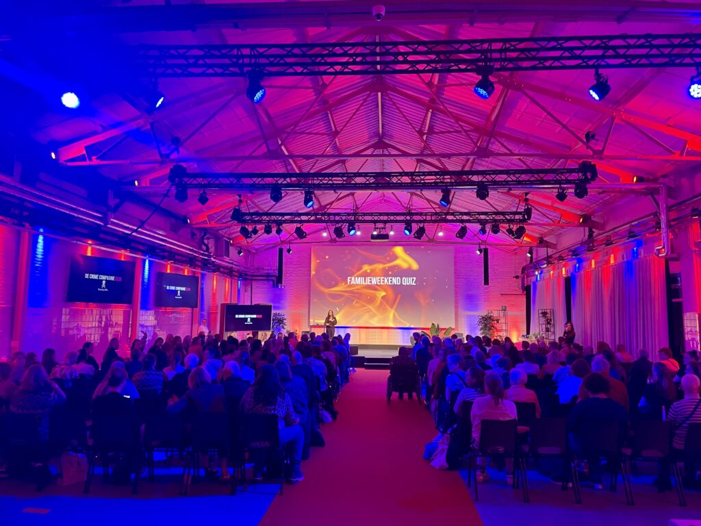 Mijn nieuwe thriller Het familieweekend is het clubboek van de maand van de Crime Compagnie Club. De leden van deze club krijgen iedere maand een verrassingsboek – altijd een thriller – thuisgestuurd, een maand voordat het in de winkel verschijnt. Ik had geluk want in ‘mijn’ maand werd ook de jaarlijkse Crime Compagnie Clubdag georganiseerd. Wat een feestje was het! Ik mocht ook even het podium op voor een kleine introductie over de inspiratie voor mijn boek en daarna deden we een familieweekend quiz! Hilariteit alom als je probeert een quiz te doen met 200+ deelnemers! Na het leuke podiumprogramma, waar ook mijn leuke collega’s een onderdeel verzorgden, stond er een lange rij lezers op me te wachten om hun boeken te laten signeren. Zo bijzonder! Kijk mee naar mijn fotoverslag van deze feestelijke dag – die toch ook wel een beetje het startschot was van mijn nieuwe thriller!